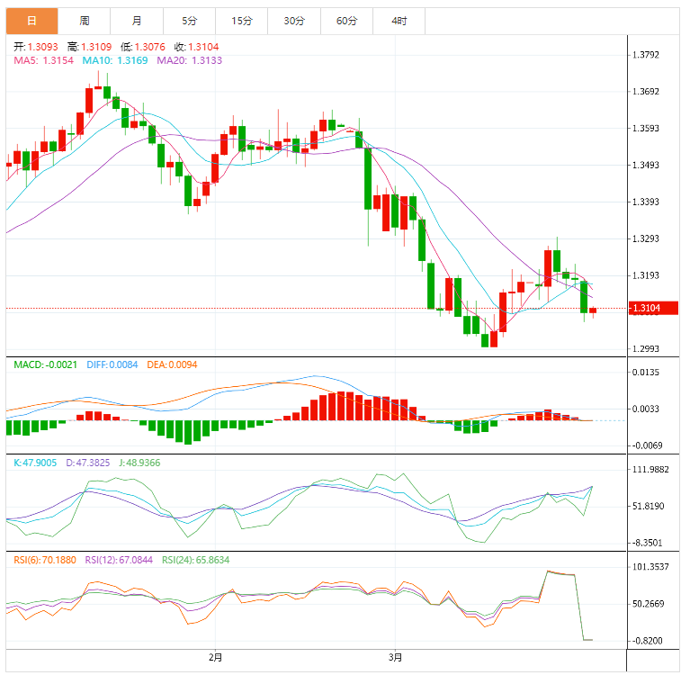 支撑位:1.3152 1.3123 1.3087