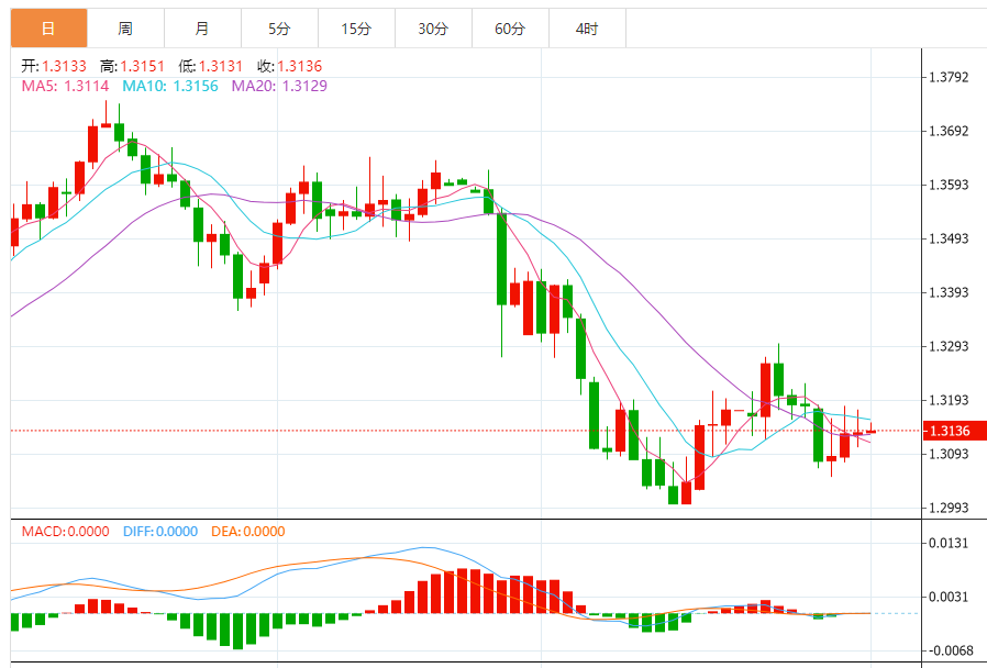 2)英镑/美元走低逼近1.31心理关口