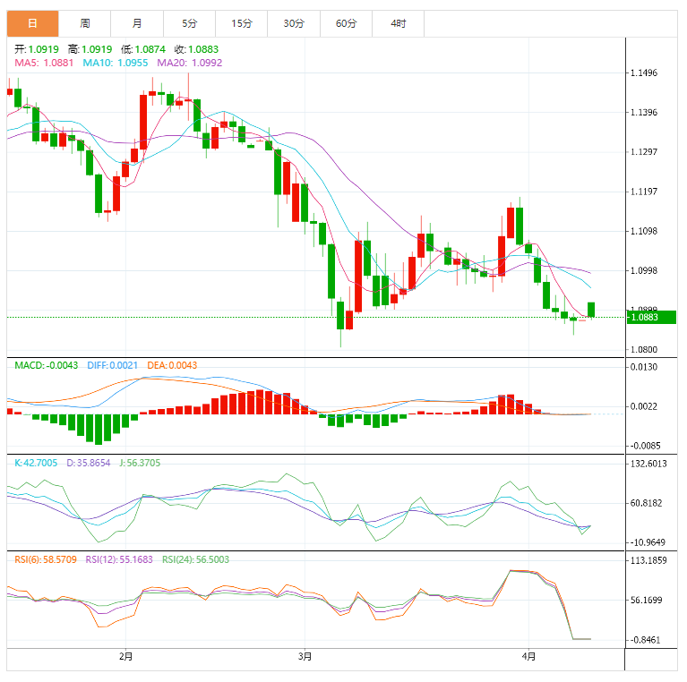 支撑位:1.0849 1.082 1.0776
