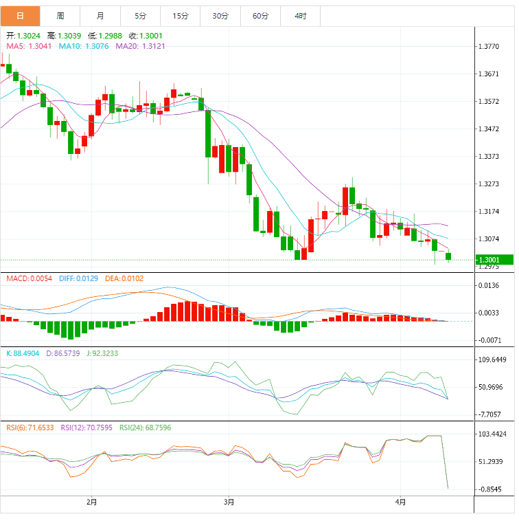 阻力位:1.3072 1.3128 1.3173