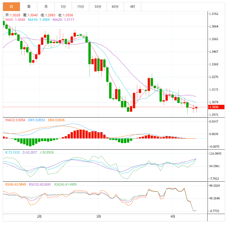 英国国家统计局(ONS)公布的数据显示,英国至2月三个月ILO失业率从3.9%小幅下降至3.8%,数据公布后英镑兑美元小幅跌向1.30。荷兰国际集团的经济学家预计该货币对将小幅跌向1.2850。