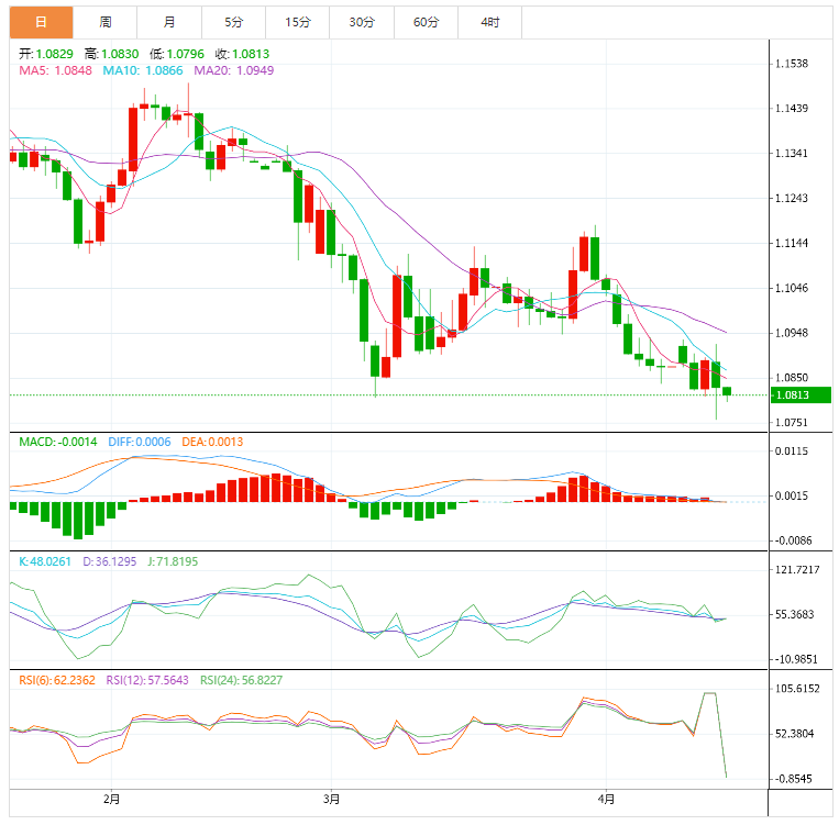在欧央行对外公布维持三大关键利率不变之后,作为市场的回应,周五(4月15日)欧元短线暴跌,盘中欧元兑美元跌破1.0800关口,跌幅一度超0.2%。面对此种行情,投资者普遍认为,在通胀飙升及其他央行先后加息政策的背景下,欧央行暂不决定收紧政策,欧元后继走势还会继续“大跳水”。