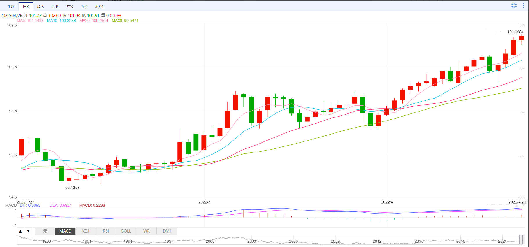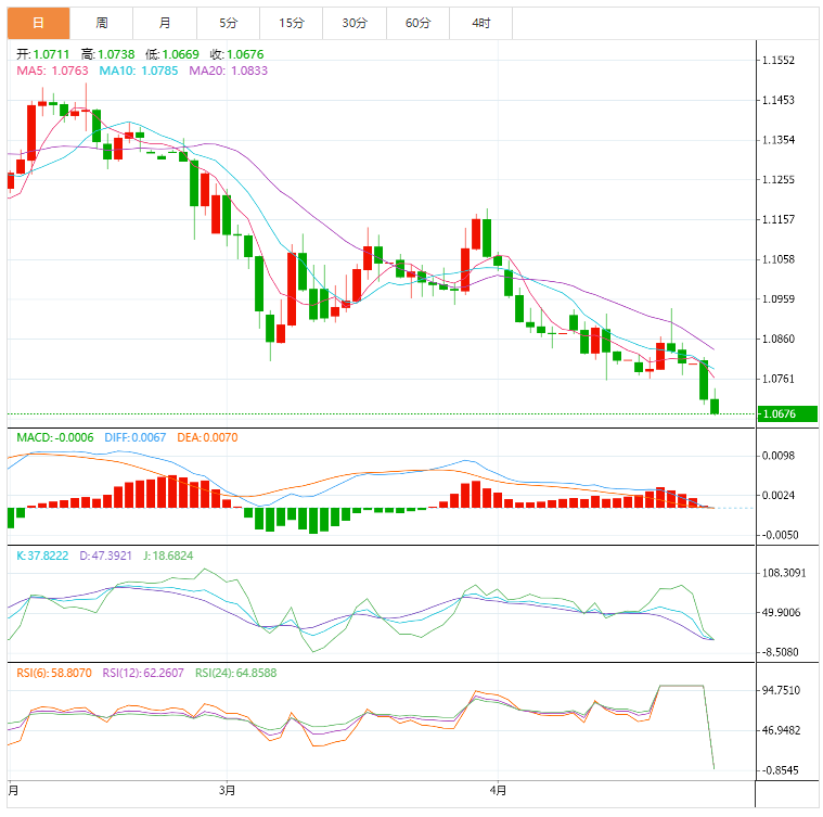 美元指数:截止北京时间20:30,美元指数小幅上涨,现报101.92,涨幅0.17%。纽市盘前,美元仍处于买入价状态,目前距离关键的102.00水准还有很大距离。在持续避险情绪和美国国债收益率下降的背景下,美元在本周前半周面临新的买入兴趣,并挑战102.00附近。到目前为止,美元的价格走势仍然取决于美联储收紧利率的可能性及其对经济和地缘政治的潜在影响。到目前为止,美联储收紧正常化进程似乎是受到通胀上升和劳动力市场稳定健康的支撑。技术面上,美元指数上涨0.19%,至101.92,突破101.96(4月26日的2022年高点)将打开大门,进入102.00(一轮水平),最终进入102.99(3月20日的2020年高点)。