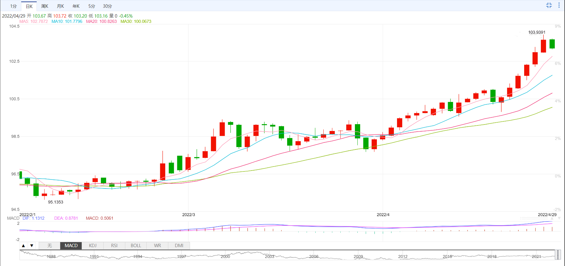 支撑位:103.09 102.52 102.1