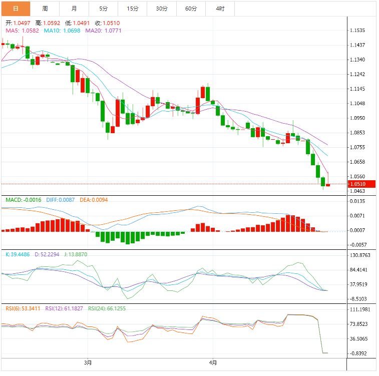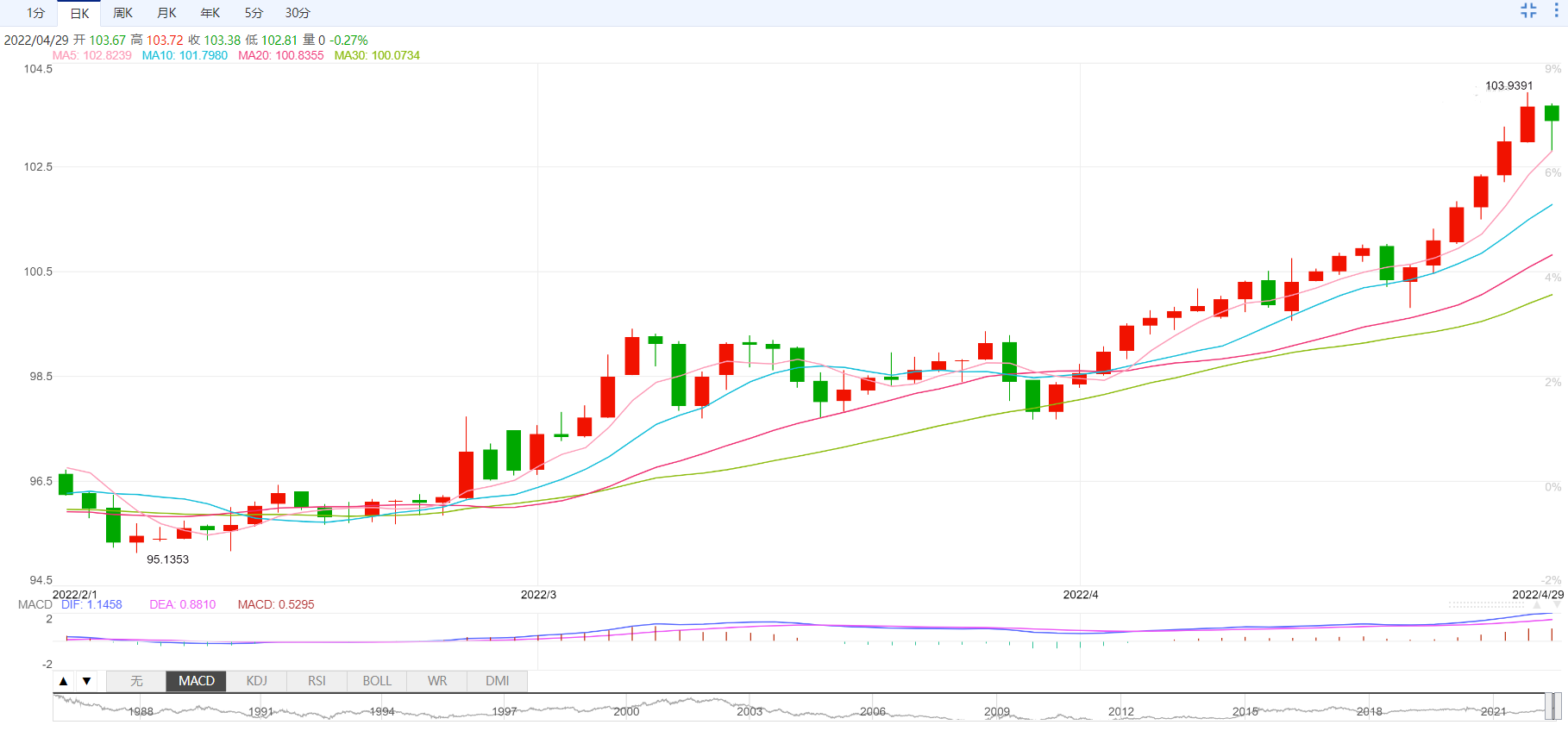 美联储5月议息会议渐行渐近,在市场加息预期的推升下,美元指数逐步走高。全球主要非美货币受到打压,纷纷走弱,创下多个“首次”。4月28日,欧元兑美元跌破1.05关口,为2017年3月以来首次;英镑兑美元跌破1.25关口,为2020年7月以来首次。