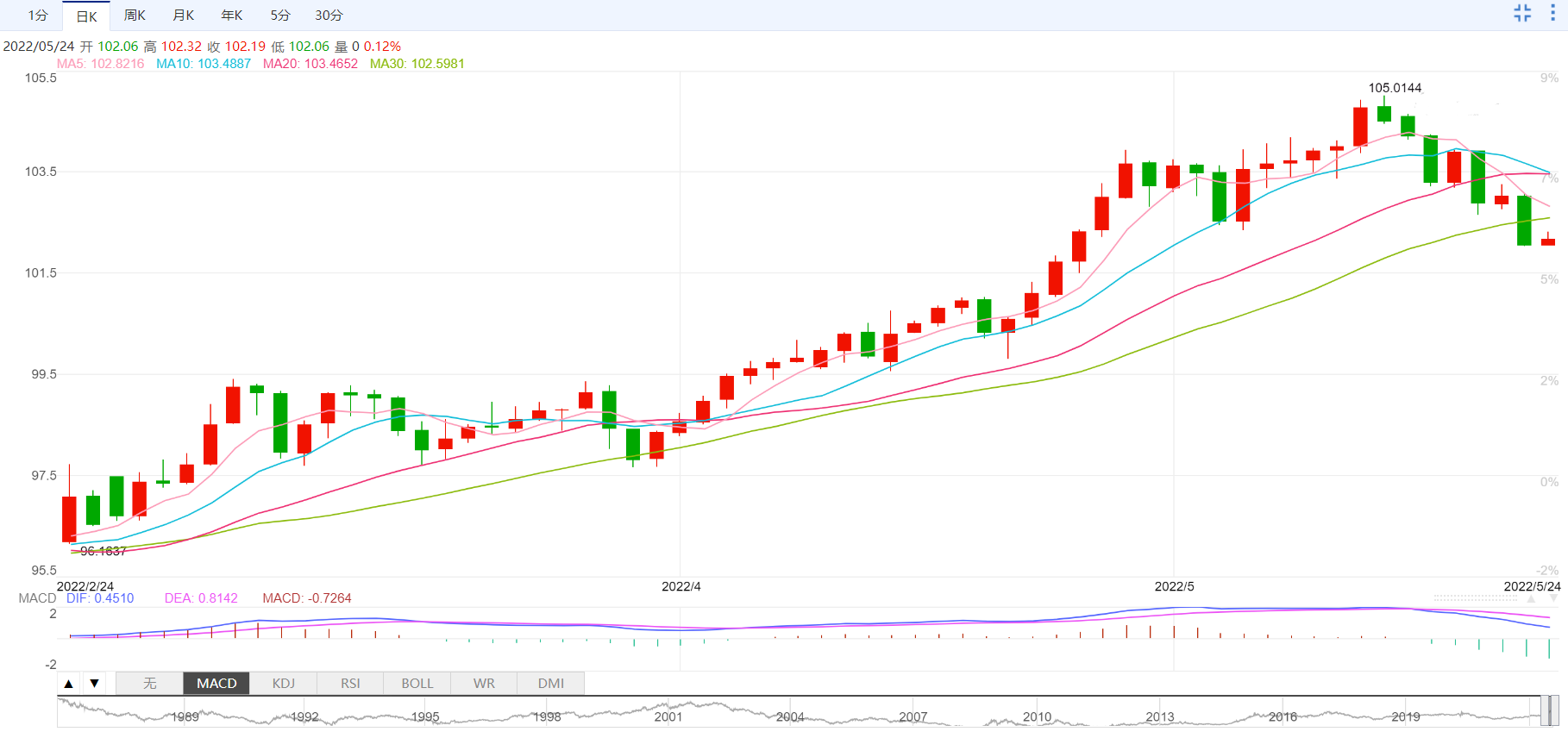 支撑位:102.77 102.53 102.28