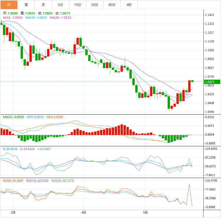 支撑位:1.0596 1.0502 1.0451