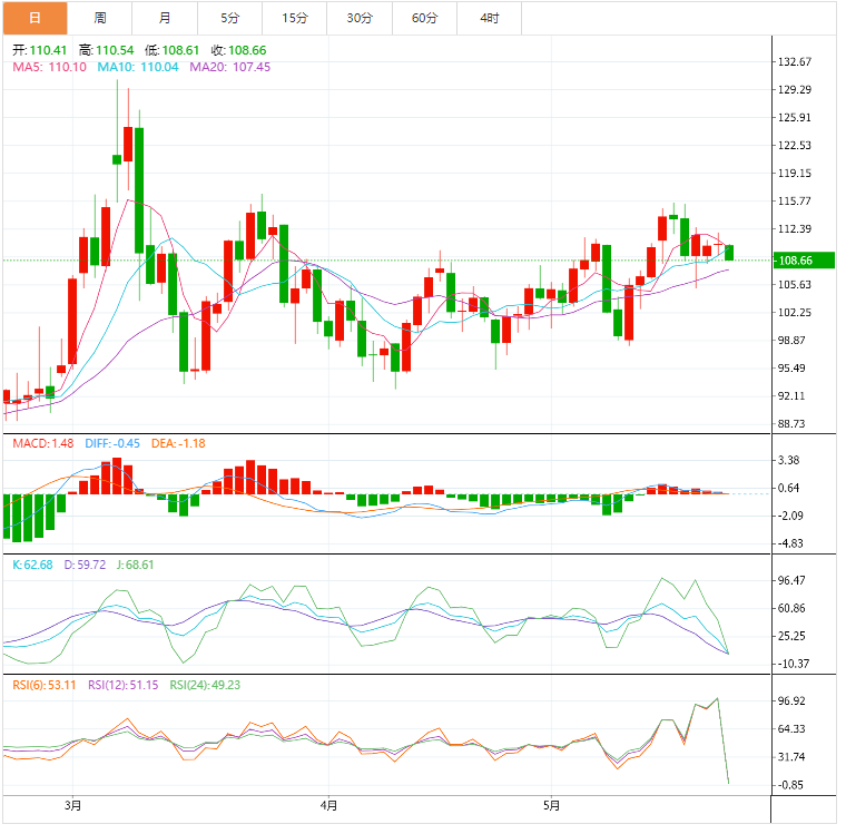 支撑位:108.69 107.32 106.03