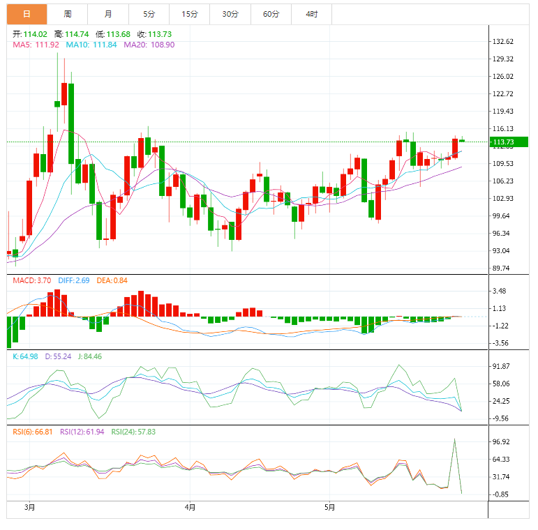 技术面:考虑到RSI(14)更坚挺,没有超买,加入看涨MACD信号来支持WTI的最新突破,大宗商品价格可能会延长上涨。六周以来的上升楔形看跌图表模式测试了上行势头,阻力线在114.90美元附近,是一个直接的阻力位。对WTI短期买家构成挑战的还有3月触及的115.90美元附近的高点,突破这一高点将令多头瞄准3月触及的年度高点129.45美元附近。