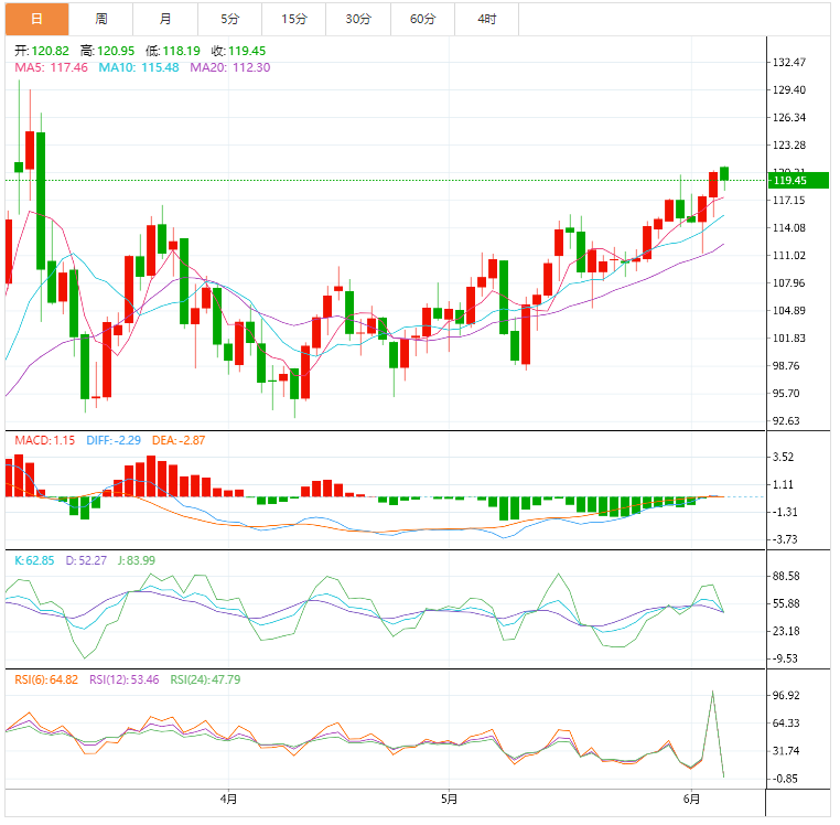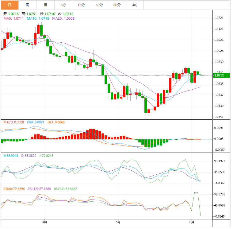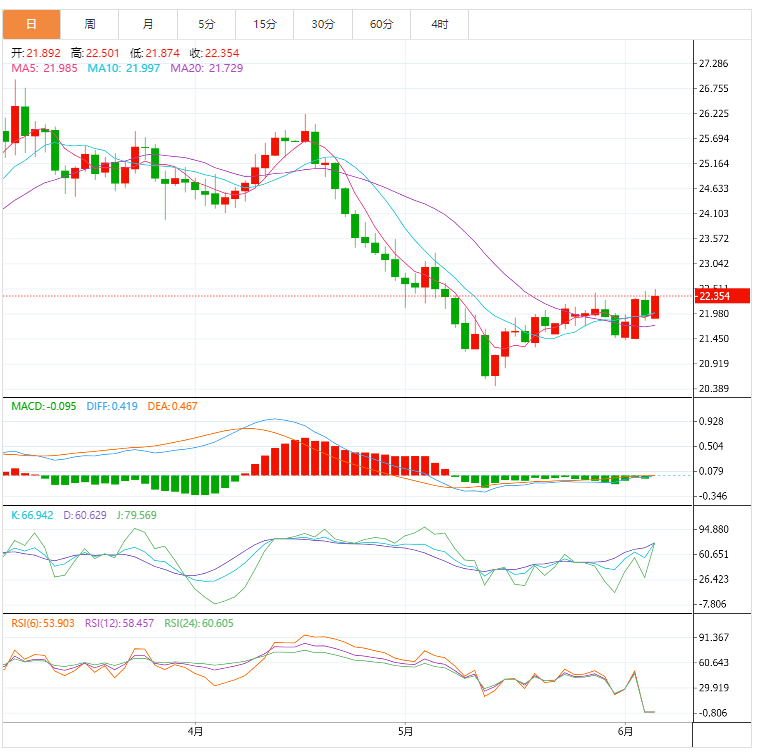 美元指数:截止北京时间20:30,美元指数小幅下跌,现报102.10,跌幅0.07%。纽市盘前,美元指数回到102.00附近。美元指数延续了过去几个交易日的不稳定表现,在风险情绪好转和美国国债收益率进一步上升的背景下,美元指数重新回到102.00区域。近期美元走软,是对通胀可能已在4月见顶的看法日益升温的回应,这反过来支持了这样一种观点,即在上调联邦基金利率时,美联储可能不需要像市场参与者预期的那样激进。美元指数下跌0.22%,报101.94,接下来初步支撑位于101.44(55天移动均线),然后是101.29(5月30日低点)和99.81(4月21日低点)。上行方面,突破102.73(6月1日高点)将打开桶往105.00(2022年5月13日高点)的大门,最终达到105.63(2002年12月11日高点)。