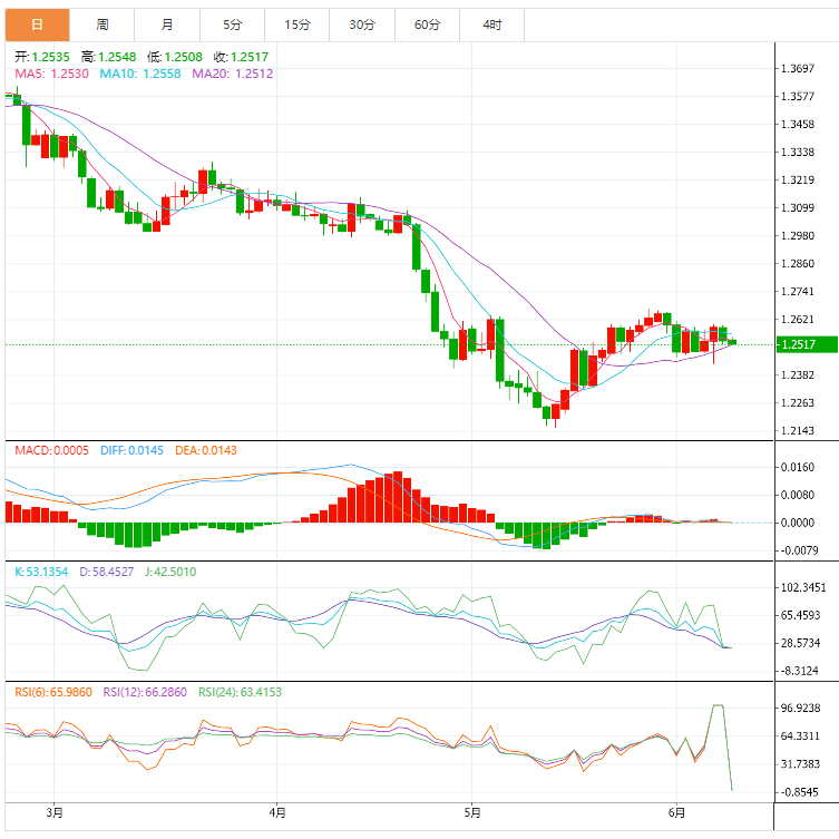 技术面:英镑构筑达瓦斯箱体,表明标准差出现挤压。过去两周,英镑整理于1.2430-1.2600 区间。继大幅飙升后价格构筑达瓦斯箱体表明存在主动买家,这具有推动资产走高的潜力。若英镑上行突破达瓦斯箱体,突破周线高点1.2600 将提振汇价依次上涨至 5 月高点和整数关阻力位1.2667 和1.2700。
