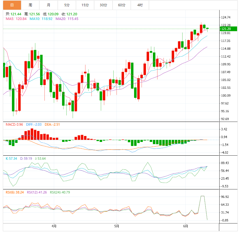 阻力位:122.15 123.63 125.9