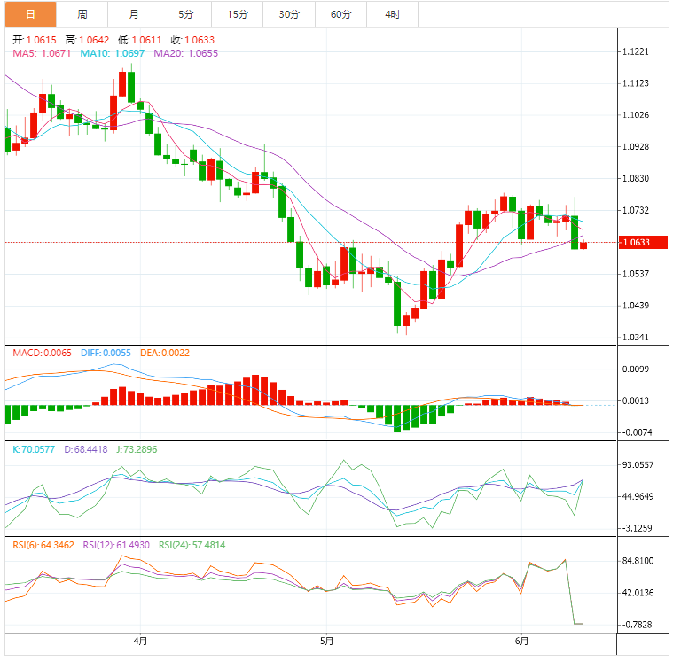 在欧央行公布偏鹰利率决议之后,作为市场的回应,周五(6月10日)欧元企稳反弹,盘中欧元兑美元突破1.0600关口,其涨幅一度超0.1%。面对此种行情,投资者普遍认为,在欧央行有明显“转鹰”兆头的情况下,欧元兑美元将喜迎反转行情。