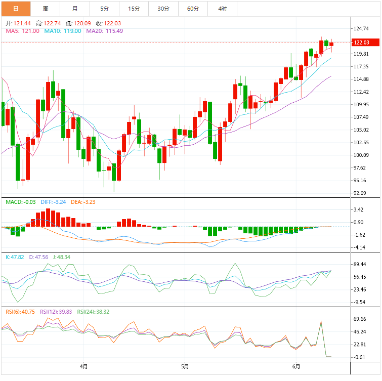 美元指数:截止北京时间20:30,美元指数小幅上涨,现报103.73,涨幅0.41%。纽市盘前,美元指数在本周结束时在103.30区域有涨有跌。继周四强劲上涨至103.00以上之后,该指数周五的交易走势不稳定。在欧洲央行在周四的会议上并没有像许多人预期的那样表现出强硬立场后,对风险资产的强烈抛售进一步升温,为美元增添了额外的动力,并推动美元指数升至超过103.00的数周新高。现在,美元指数上涨0.01%,至103.32点,突破103.36点(6月9日的月度高点),将打开105.00点(2022年5月13日的高点)的大门,最终达到105.63点(2002年12月11日的高点)。另一方面,下一个竞争出现在101.75(55天SMA),然后是101.64(6月3日的月低点),然后是101.29(5月30日的月低点)。