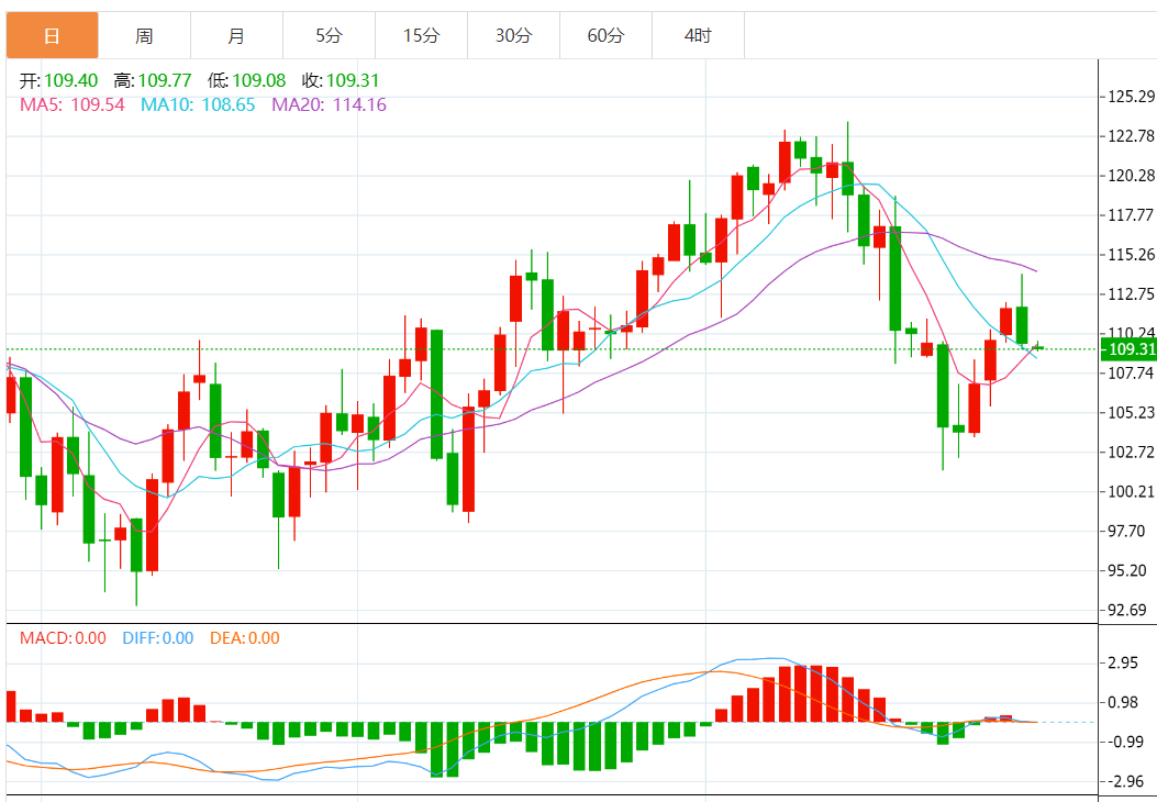 周四亚盘,美原油徘徊于109.62附近,油价周三下滑约2%,因为美国汽油和馏分油库存增加,以及对全球经济增长放缓的担忧抵消了对原油供应紧张的持续担心。美国能源信息署(EIA)表示,美国上周的原油库存下降,即便产量创下2020年4月第一波新冠疫情以来的最高水平。燃料油库存上升,因为炼油厂加大了生产力度,以95%的产能运作,这是四年来同期的最高水平。