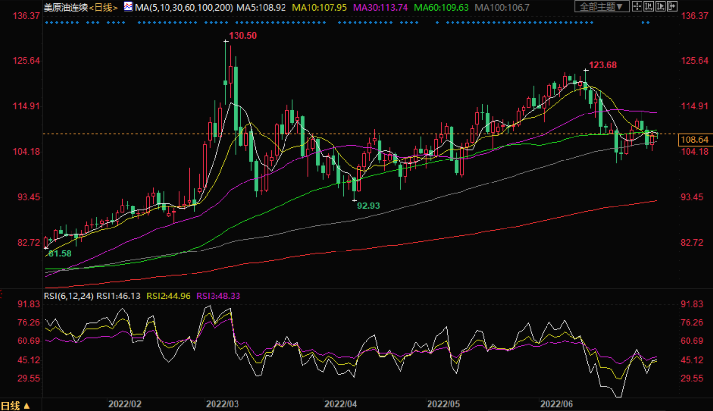 技术面:原油在105.00美元附近的三周上升支撑线限制了WTI的短期下跌趋势。然而,复苏走势需要从6月底112.72美元的高位得到验证。