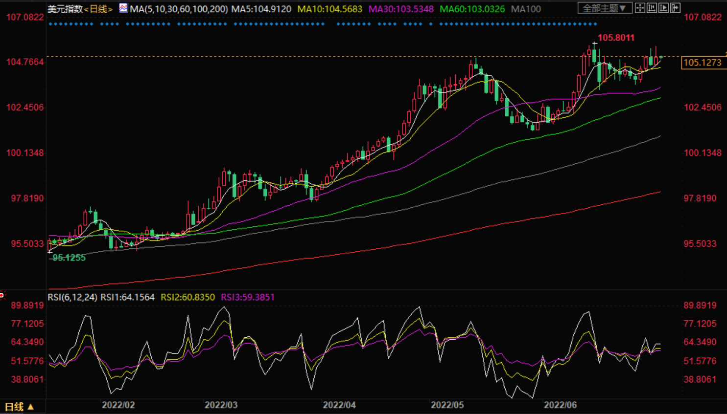 支撑位:104.70 104.50 103.42