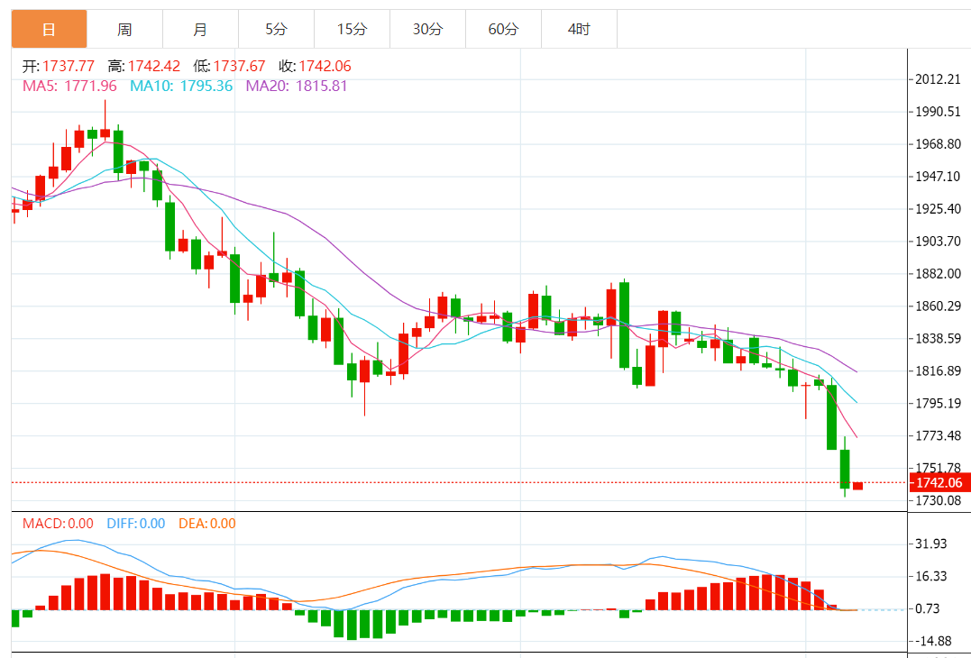 周四亚盘,现货黄金徘徊于1742附近。金价周三下跌1.8%,跌至逾9个月低点,因美元跃升至2020年3月以来最高,在衰退担忧日盛而美联储继续加息之际,投资者把美元当成避险资产。全球央行都在收紧货币政策以应对通胀之际,投资者担心经济低迷即将到来。美联储加息速度会超过欧洲央行等同行的可能性也进一步提振美元上涨。金价迈向2021年6月以来最大单周跌幅。
