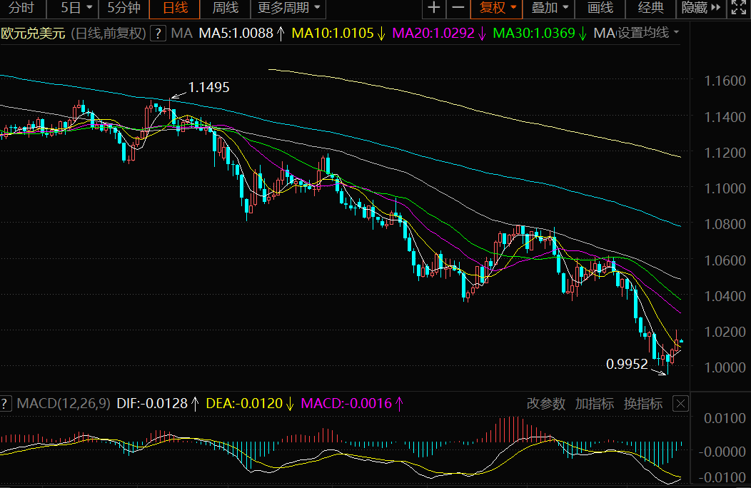周一美元触及一周最低,市场降低了美联储激进加息的预期,现在坚定的押注加息75基点;金价受到提振有所回升;油价尾盘大涨4.5%,受益于美元走软和供应紧张支撑;欧元缩减了涨幅,由于欧元区潜在的能源供应短缺的不确定性,欧元在最近几个交易日面临卖出压力。