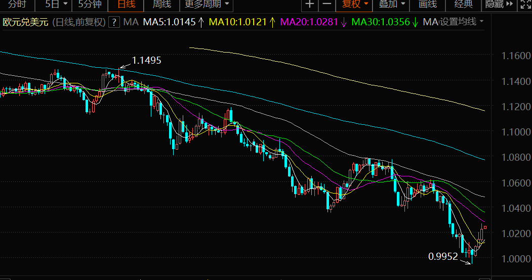 周三亚盘,美元指数徘徊于106.54附近,在过去三个交易日中,市场参与者一直在积极抛售美元,导致美元指数大幅走低。欧元兑美元在上周滑落至平价下方后出现反弹,这是欧元自2002年以来首次跌破平价。 周二欧元兑美元最高升至1.0268,为7月6日以来最高,因货币市场认为欧洲央行周四加息50个基点的可能性为60%,高于周一的25%。