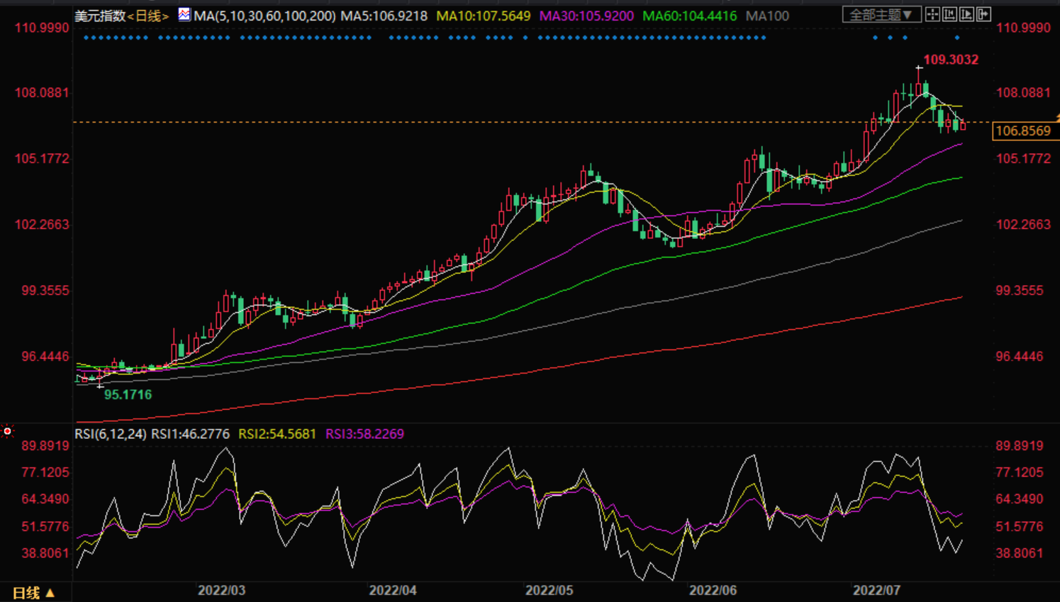 阻力位:107.13 107.7 108.06