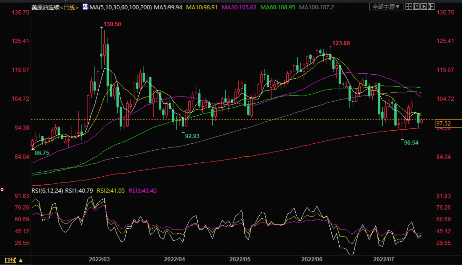 支撑位:98.05 96.64 95.52