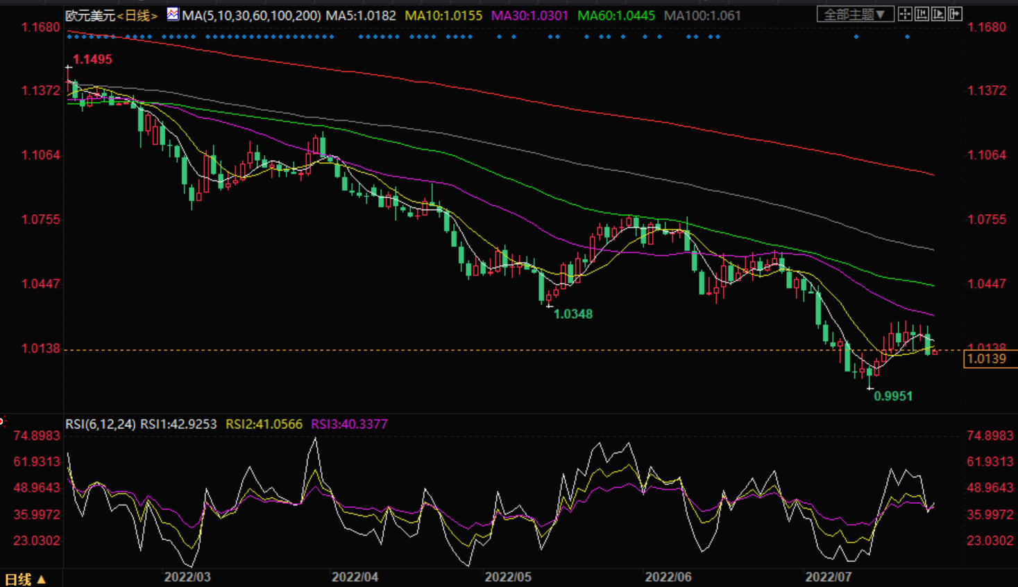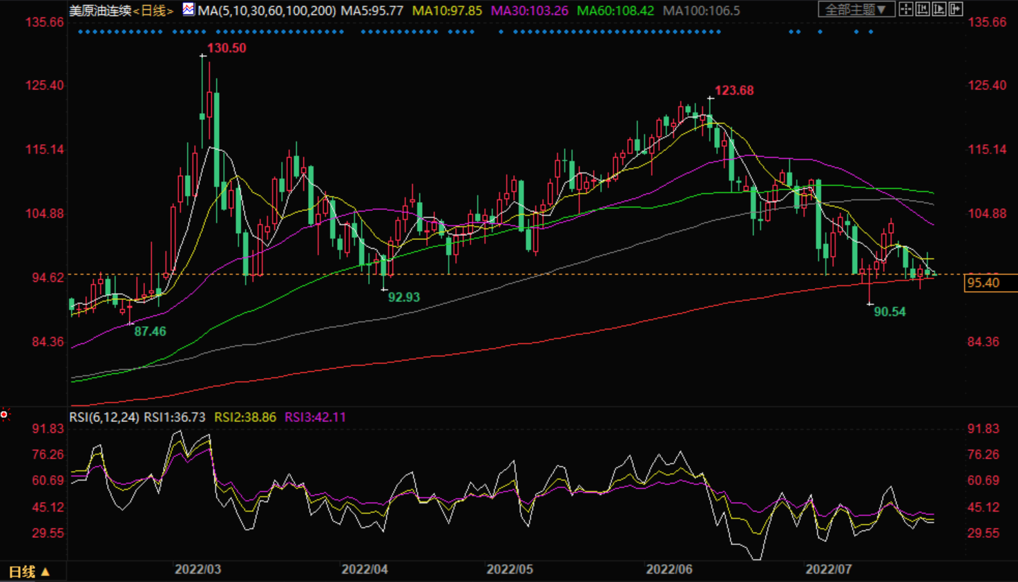 周三(7月27日)亚市盘初,美油交投于95.54美元/桶附近,油价周二下跌近1%,受累于美国释放原油储备,同时国际货币基金组织对经济前景持悲观态度,下调全球经济预期;另外,猴痘疫情全球蔓延也为空头助力。