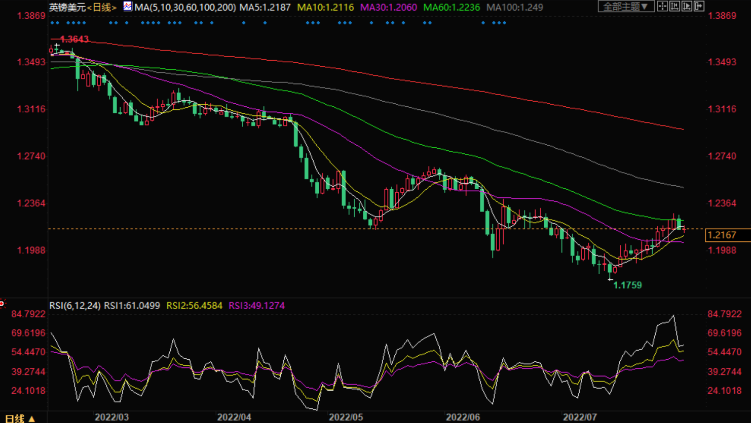 支撑位:1.2173 1.2097 1.2037