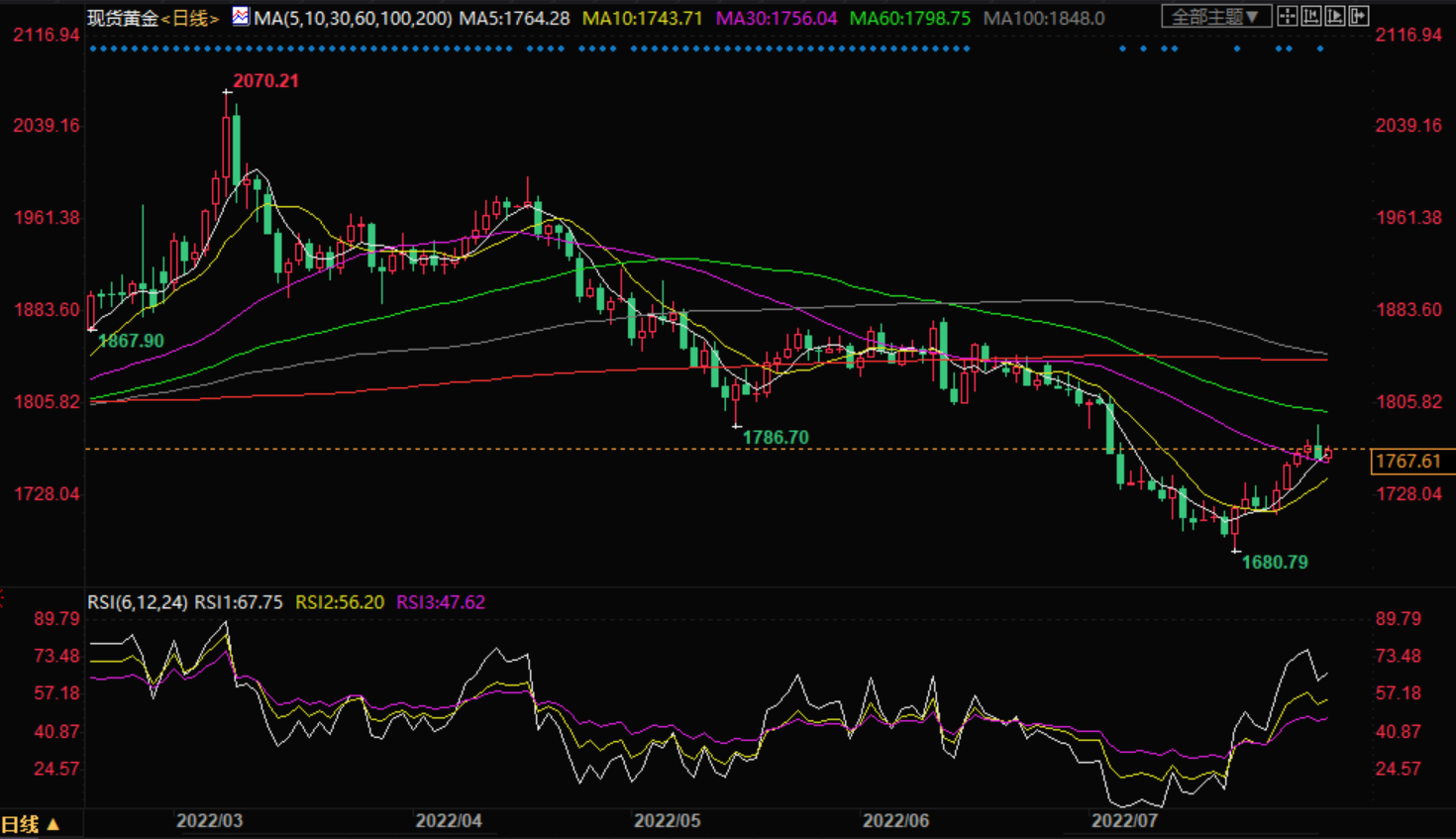 美元指数:截止发稿,美元指数承压,现报106.25,跌幅0.07%。欧市盘前,美元指数延续了前一天从月低点反弹的势头,在周三盘中刷新了盘中约106.50的高点。尽管如此,受地缘政治紧张局势和美联储鹰派言论的影响,美元兑六种主要货币指数周二录得三周来最大涨幅。由于美元的避险吸引力,中美之间的地缘政治紧张关系为美元提供了更多的力量。在经济衰退担忧的背景下,对全球两大经济体之间更激烈争斗的担忧,将对全球产生更多负面影响。接下来,围绕中国和美联储的头条新闻可能会在美国6月工厂订单和ISM服务业PMI公布之前直接引导美元指数走势。
