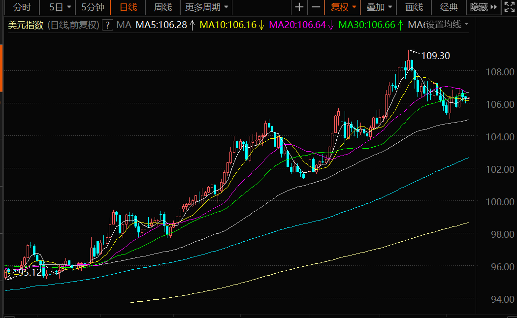 支撑位:106.20 106.00 105.00