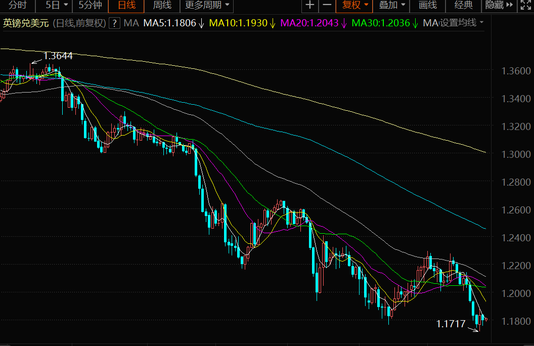 美元指数:截止发稿,美元指数徘徊于108.51附近。市场出现风险偏好,美元失去上涨动能。由于美国通胀年率仍保持在8.5%,远高于美联储2%的目标,投资者已经降低了对联储可能倾向于放慢加息步伐的预期。投资者将仔细研读鲍威尔在杰克森霍尔的讲话,以寻找经济放缓可能促使美联储改变策略的任何迹象。然而市场认为,如果鲍威尔表达出任何对货币紧缩影响的担忧,美元可能会在周五回吐部分涨幅。日内市场静待美国GDP数据。技术上,突破109.29(2022年7月15日高点)后下一目标是109.77(2002年9月高点),然后是110.00(整数关口)。另一方面,初步支撑位在106.12(55日移动均线),随后是104.63(8月10日低点),然后是104.36(100日移动均线)。