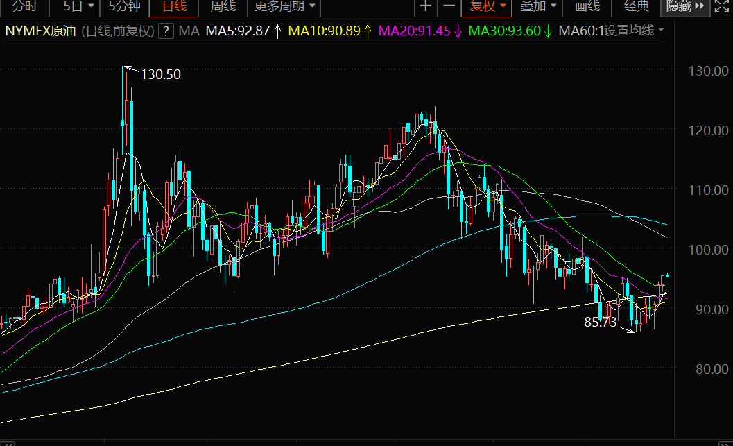 技术面:油价攀升至三周高点,同时突破之前的阻力位 94.70,为下一个阻力位98开辟道路,前提是价格保持在 93.50 上方。