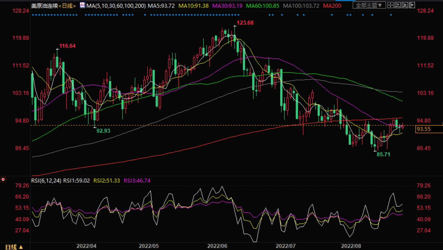 支撑位:93.30 91.85 90.00