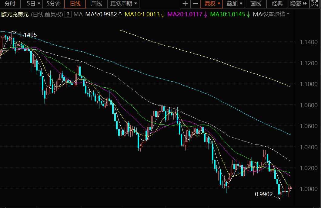 周二亚盘,美元指数回调,重回109关口下方,美元指数周一创下20年新高,受助于美联储主席鲍威尔的鹰派发言,但涨势受限,盘尾从高位回落,因欧洲央行加息预期增强提振欧元。