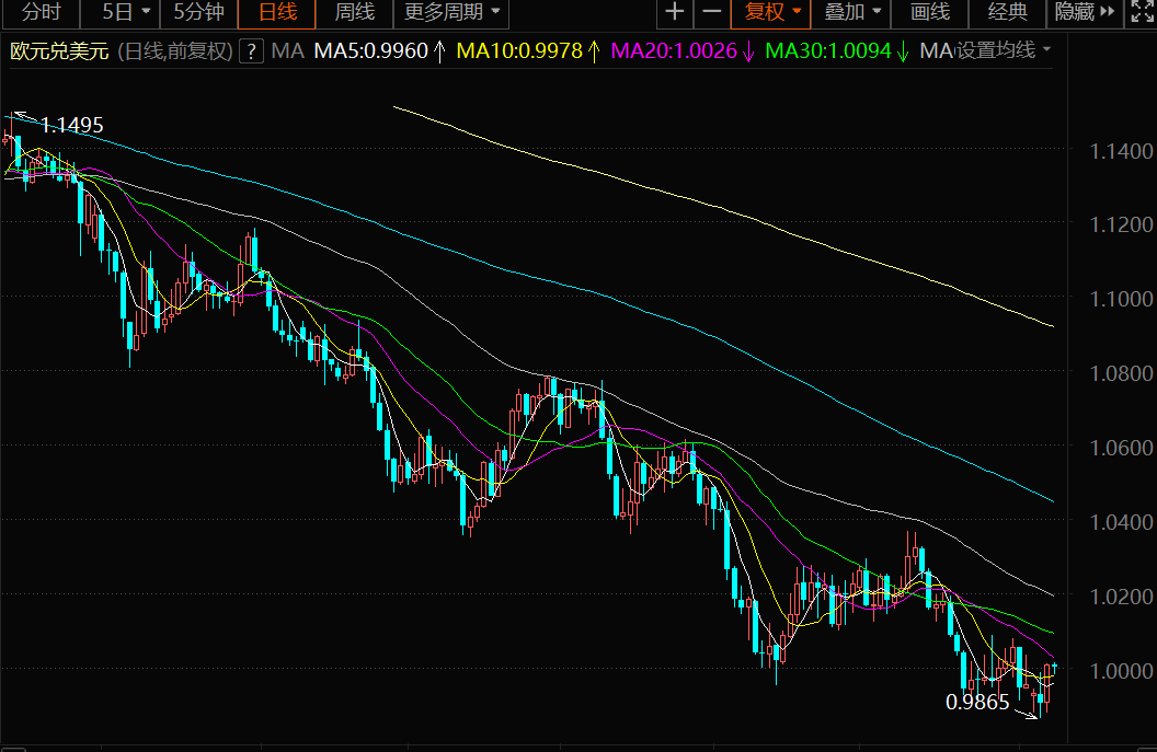 技术面:美元指数在多年高位录得类似“吞没”看空的顶部信号,KDJ也高位形成死叉,MACD发出顶背离信号,美元短线见顶风险有所增加,有望给金价提供进一步反弹动能。