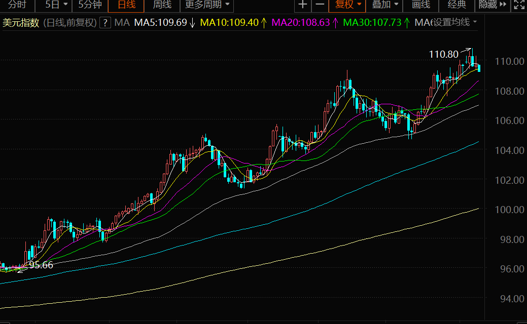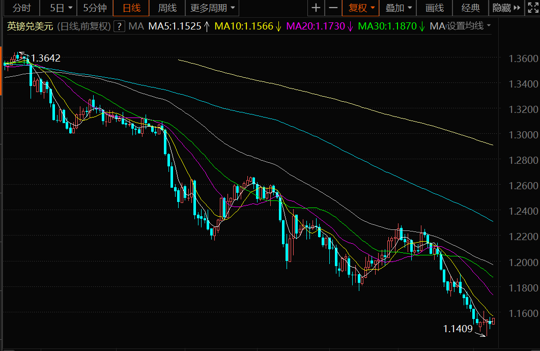 周五美元指数微跌,目前交投于109.58附近。美联储主席鲍威尔重申,美联储将继续加息以抑制急升的通胀,并警告称不能过早放松货币政策,美联储强化鹰派立场推动美元兑日元上涨。 周四英国伊丽莎白女王去世,英国央行下周加息75个基点的概率降至50%以下,这些消息都令英镑承压。
