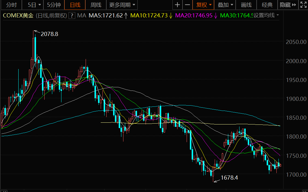 周五亚盘,现货黄金拉升,徘徊于1715附近。金价周四下滑,此前美联储主席鲍威尔的言论巩固了在即将举行的政策会议上加息75个基点的预期。鲍威尔说,美联储“坚定地致力于”抗击通胀,但他称,仍希望在没有先前抗击通胀所涉及的“非常高的社会成本”的情况下做到这一点。
