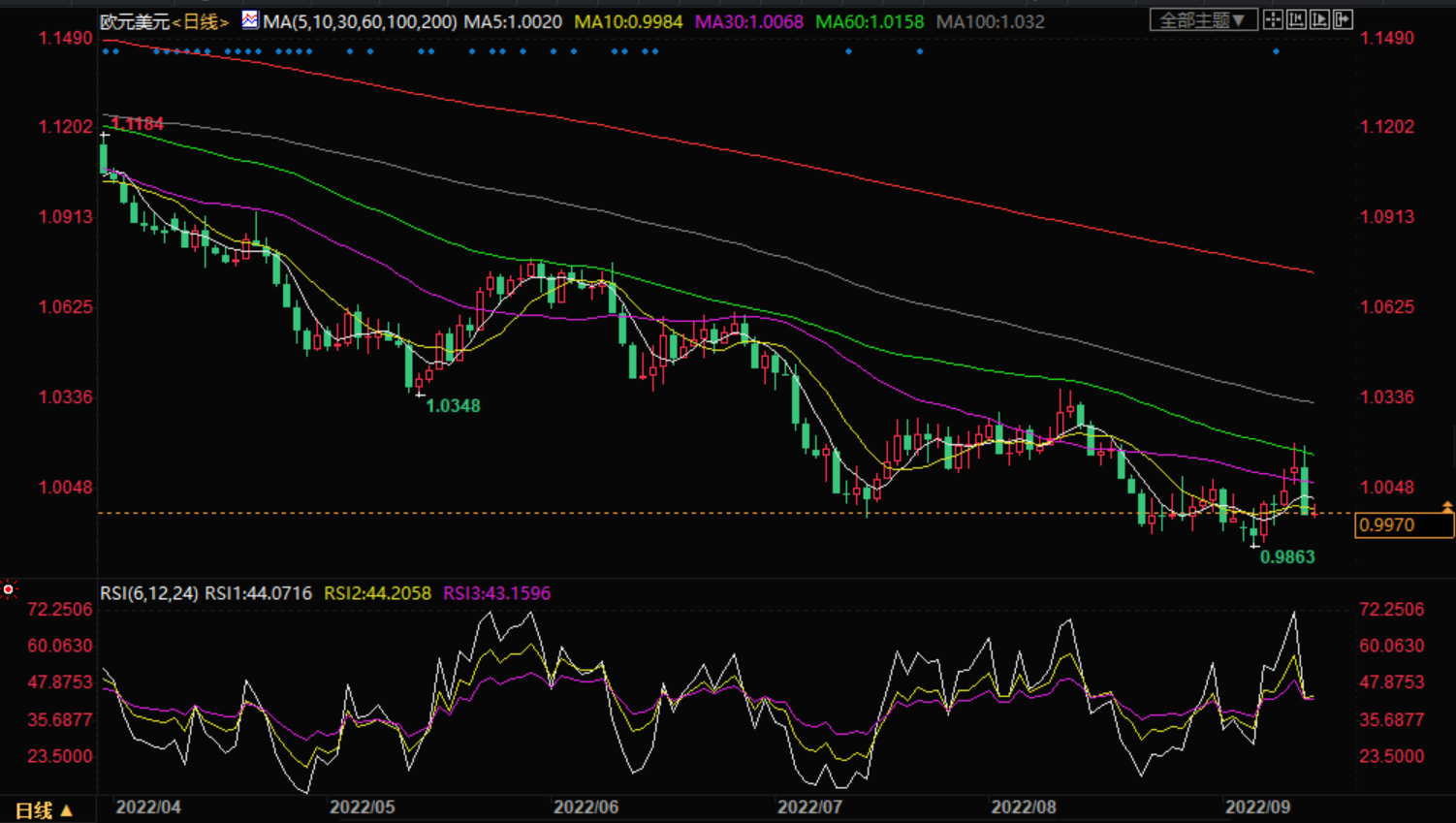 支撑位:0.9898 0.9822 0.9677