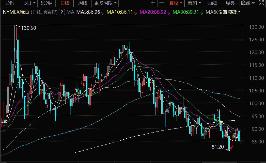 周五亚盘,美油交投于85美元/桶附近,油价周四下挫超4%,触及一周最低,受累于达成了避免美国铁路罢工的临时协议,对全球需求疲软的预期,以及在可能的大规模加息前美元持续走强。