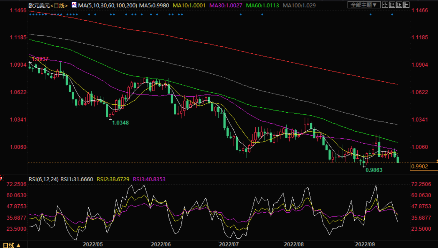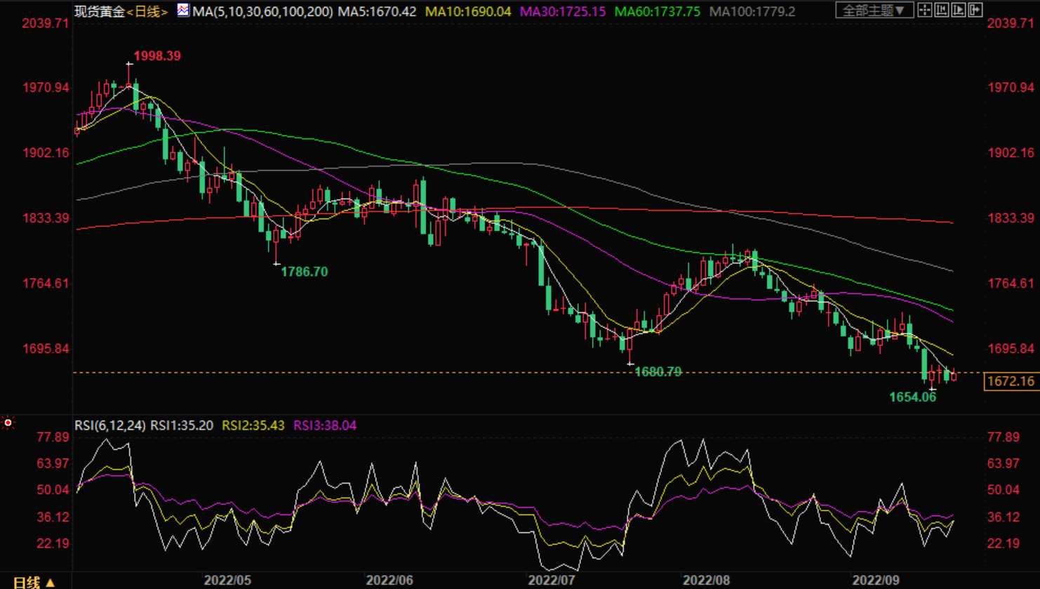 在美联储大幅加息的预期下,9月份以来,除了美元,全球几乎所有的风险资产都在下跌,美股、黄金、原油、虚拟货币,非美货币更是开启了持续下跌的模式。美元指数突破110点之后,正在区间震荡,人民币兑美元汇率也已经坐稳7整数关口,还在向下突破。
