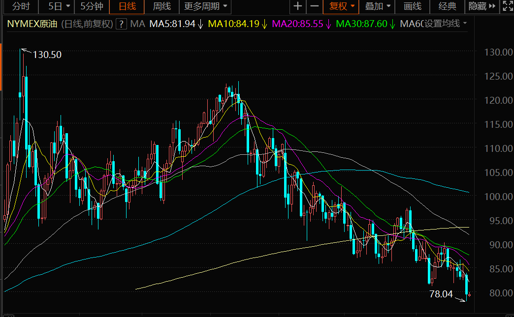 周一亚盘,美油交投于79.54美元/桶附近;油价上周五暴跌逾5%至八个月低点,因为美元再度创下二十年来新高,而且人们担心利率上升将使主要经济体陷入衰退,从而削减对石油的需求。