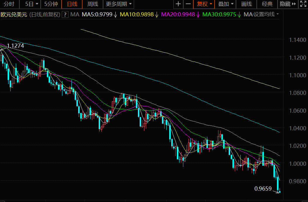 周一亚市早盘,美元指数微涨,目前交投于113.02附近。上周五美元指数收涨1.56%,报113.02。美元上周受到美联储非常鹰派的政策声明和国债收益率上升的推动。欧元和英镑兑美元上周五分别暴跌至20年和37年新低,此前调查显示整个欧元区和英国的商业活动下滑速度加快,经济可能进入衰退期。金价下跌至2020年4月以来的最低点;油价暴跌至八个月低点,因为美元创下二十多年来新高,而且人们担心利率上升将使主要经济体陷入衰退,从而削减对石油的需求。