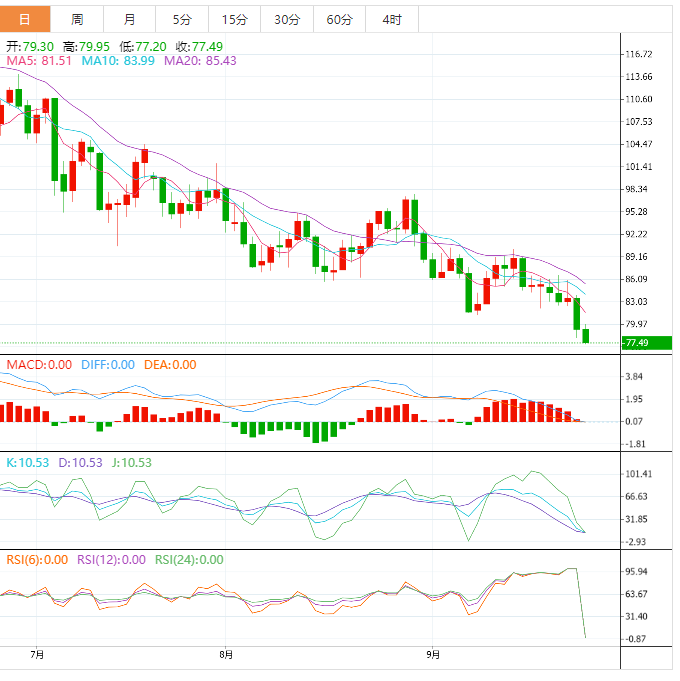 支撑位:76.88 74.55 71.1