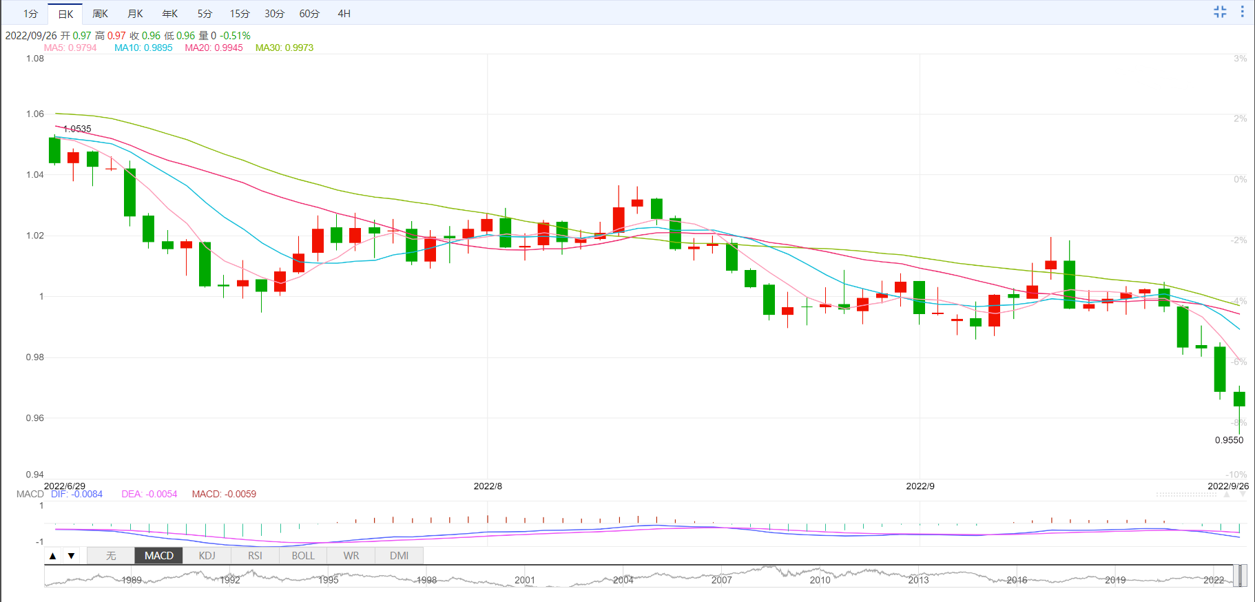 支撑位:0.9621 0.9553 0.9437