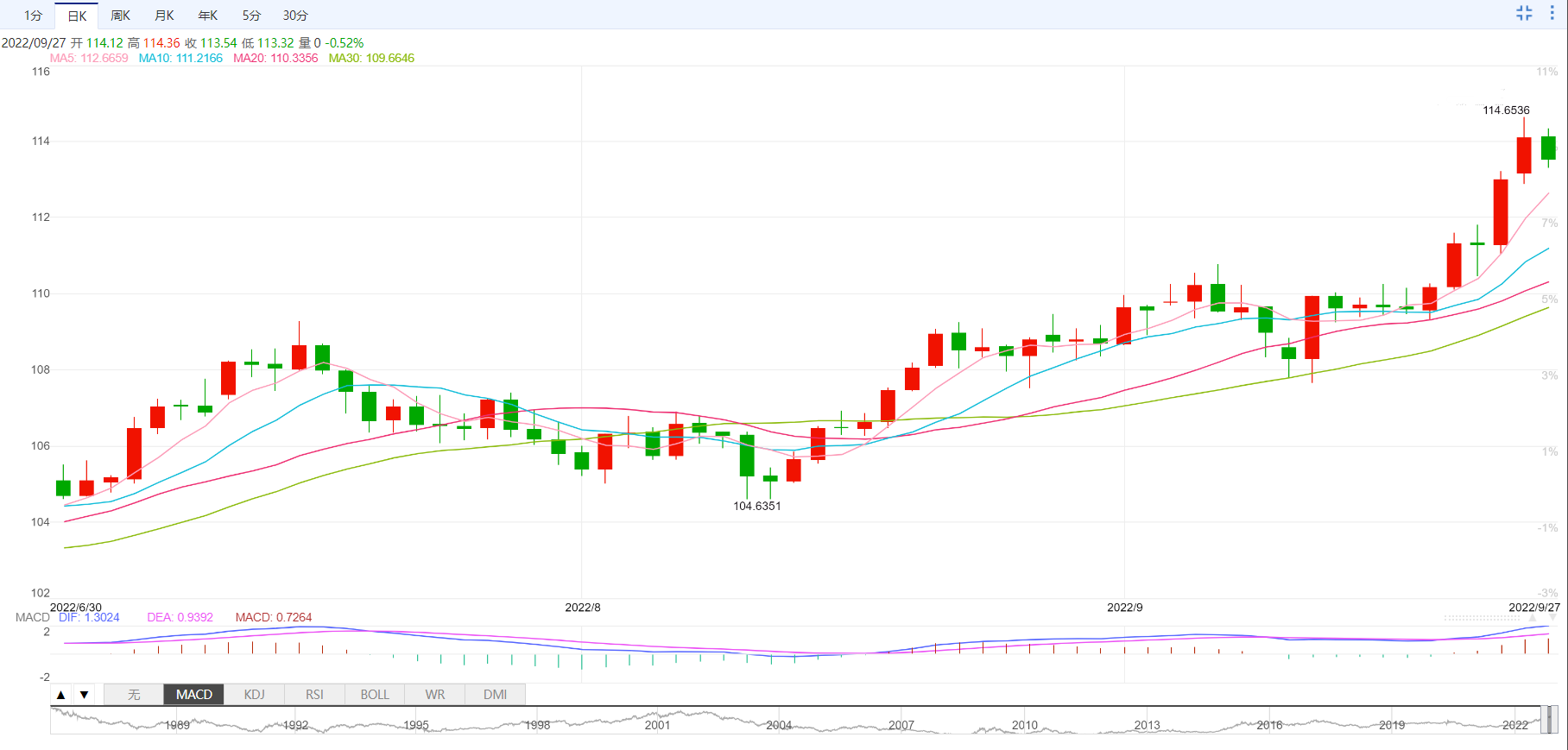 支撑位:113.13 112.13 111.36