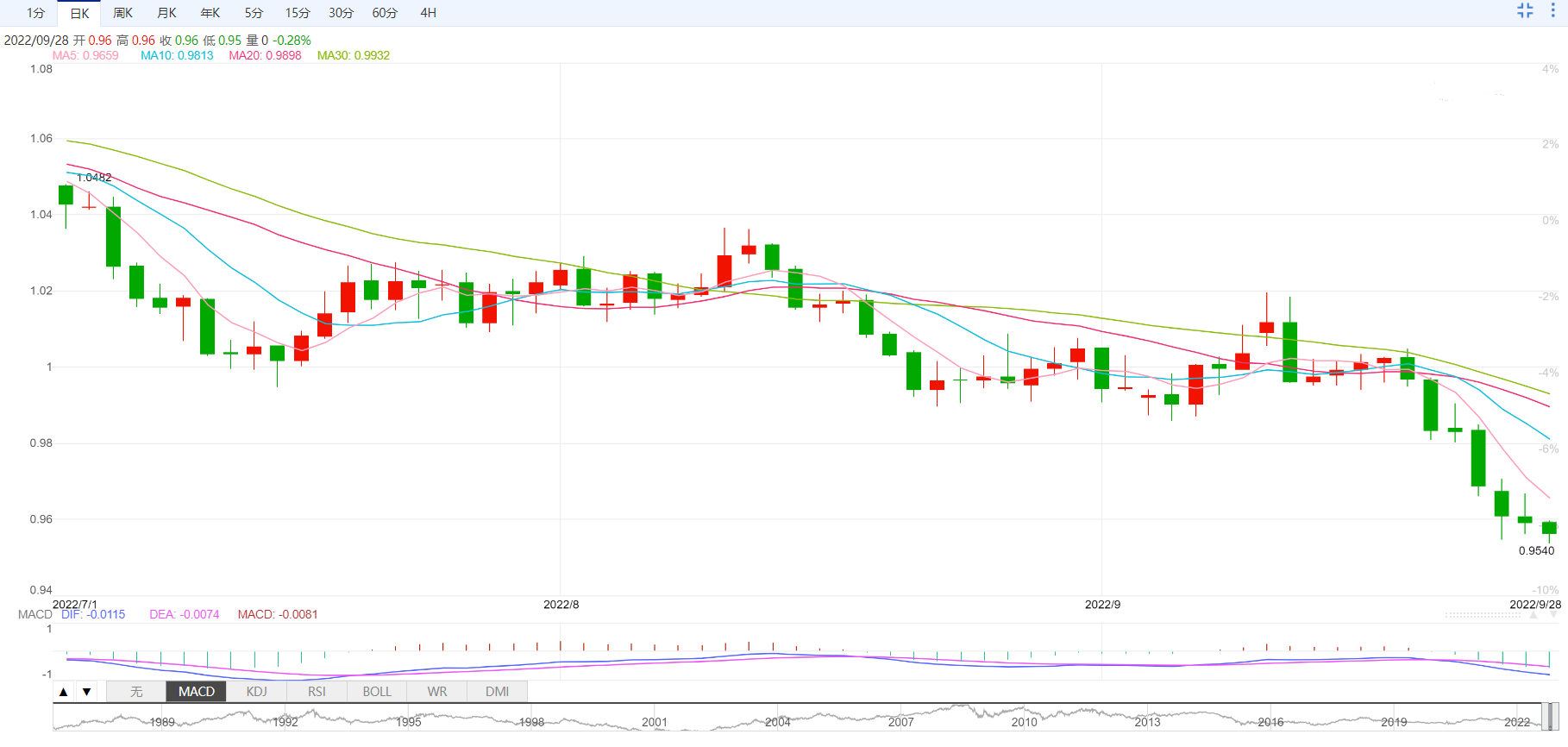 支撑位:0.9552 0.951 0.945