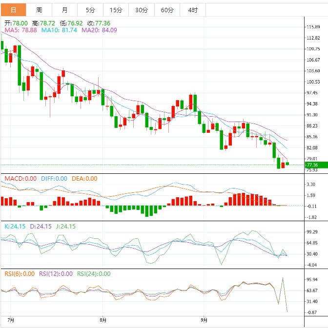 支撑位:76.13 74.57 72.99