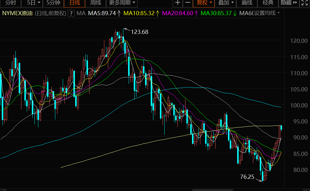技术面:如果持续上涨至92-92.50美元/桶以上,这将推动WTI油价进一步涨向100美元/桶及更高水平。短期支撑位见于90美元/桶。