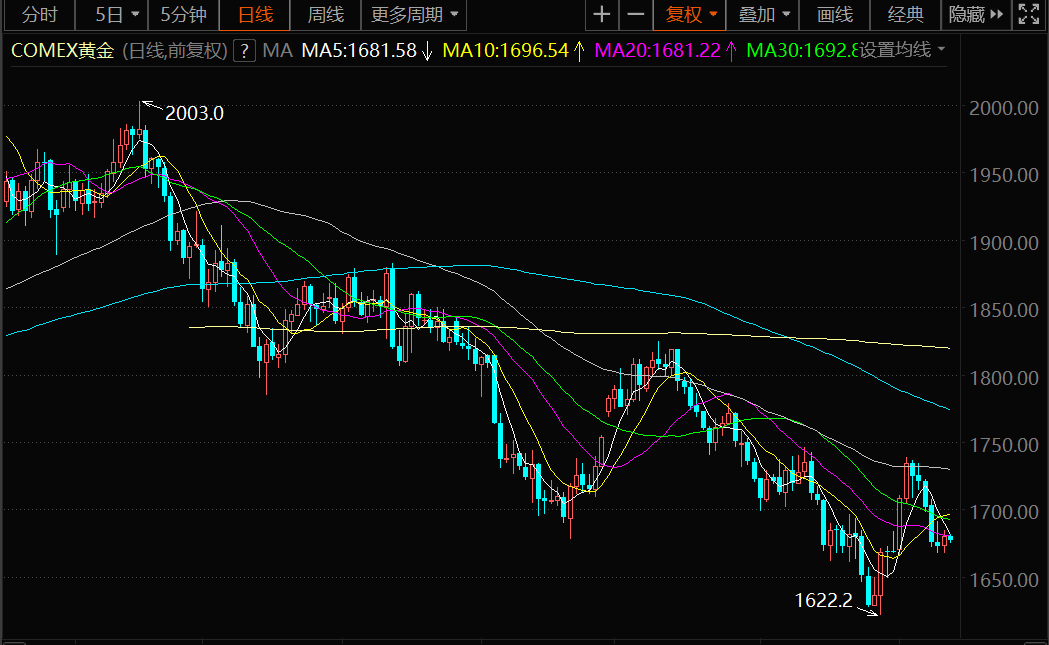 技术面:鉴于MACD金叉信号仍在,而且金价周二在1660关口附近录得了十字星K线,若能回升至布林线中轨1680关口上方,则增加短线看涨信号,进一步阻力在10日均线阻力1688.95附近,9月1日低点和9月21日高点阻力都在该位置附近,如能收复该位置,料将进一步提振多头士气。然后是1700关口附近阻力,55日均线阻力目前在1718.83附近。