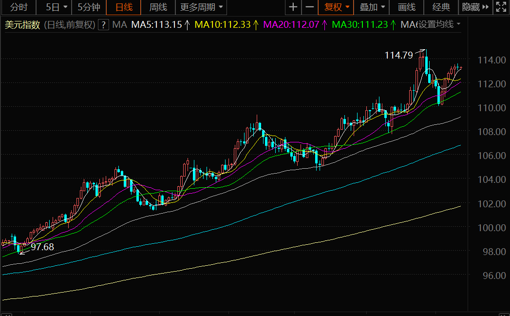美元指数:截止发稿,美元指数反弹,现报113.35,涨幅0.06%。欧市盘前,美元指数震荡徘徊于113关口上方,市场静待美国CPI数据。若数据仅略低于预期,不会损害美元。相反,若数据远高于预期,则将进一步提振美元,因为它增加了通胀在高位盘踞的风险--这正是美联储试图防止的,这将使加息比先前定价更明显的可能性更大。